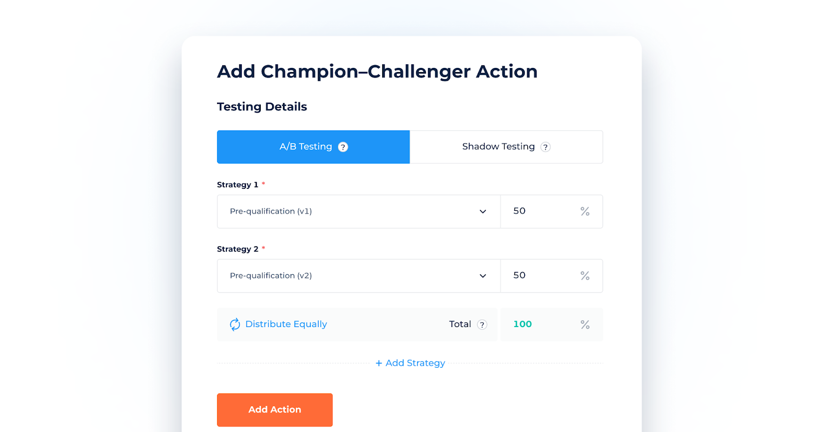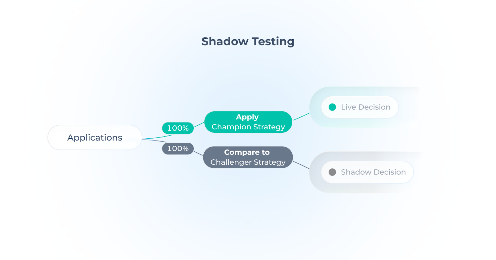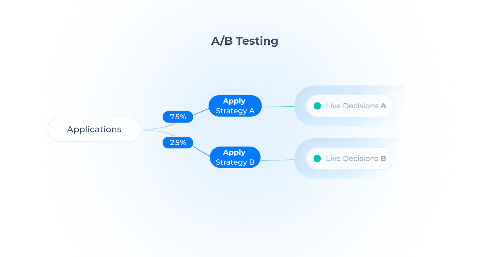 Distribute applications across multiple strategies using configurable percentages. Different versions of decision logic can be tested side by side on live traffic.