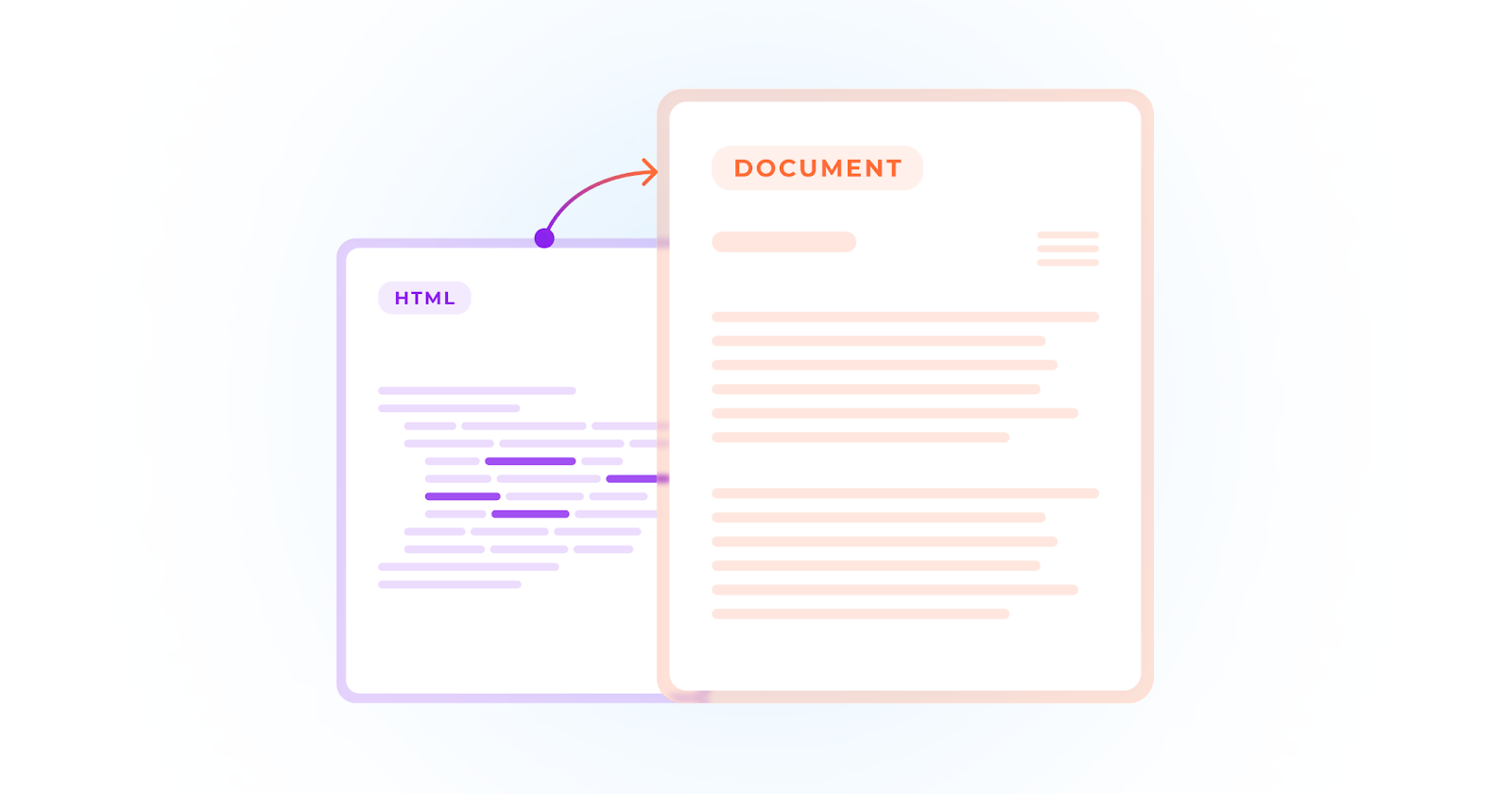 Write your own HTML code to design fully customized document templates – perfect for complex layouts and branded experiences.